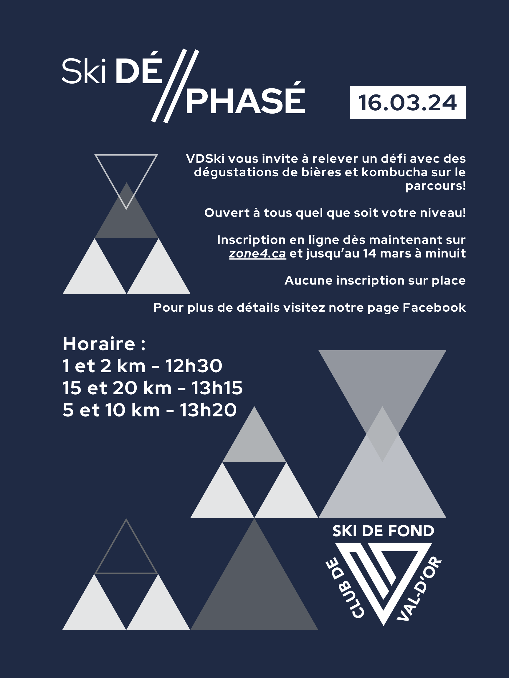 Le Club de Ski de fond de Val-d’Or (VDSKI) organise le défi sportif Ski déphasé le 16 mars prochain afin de promouvoir la pratique de ski de fond, de proposer aux participants.es un événement rassembleur qui plaira tant aux personnes débutantes qu’aux plus confirmées.