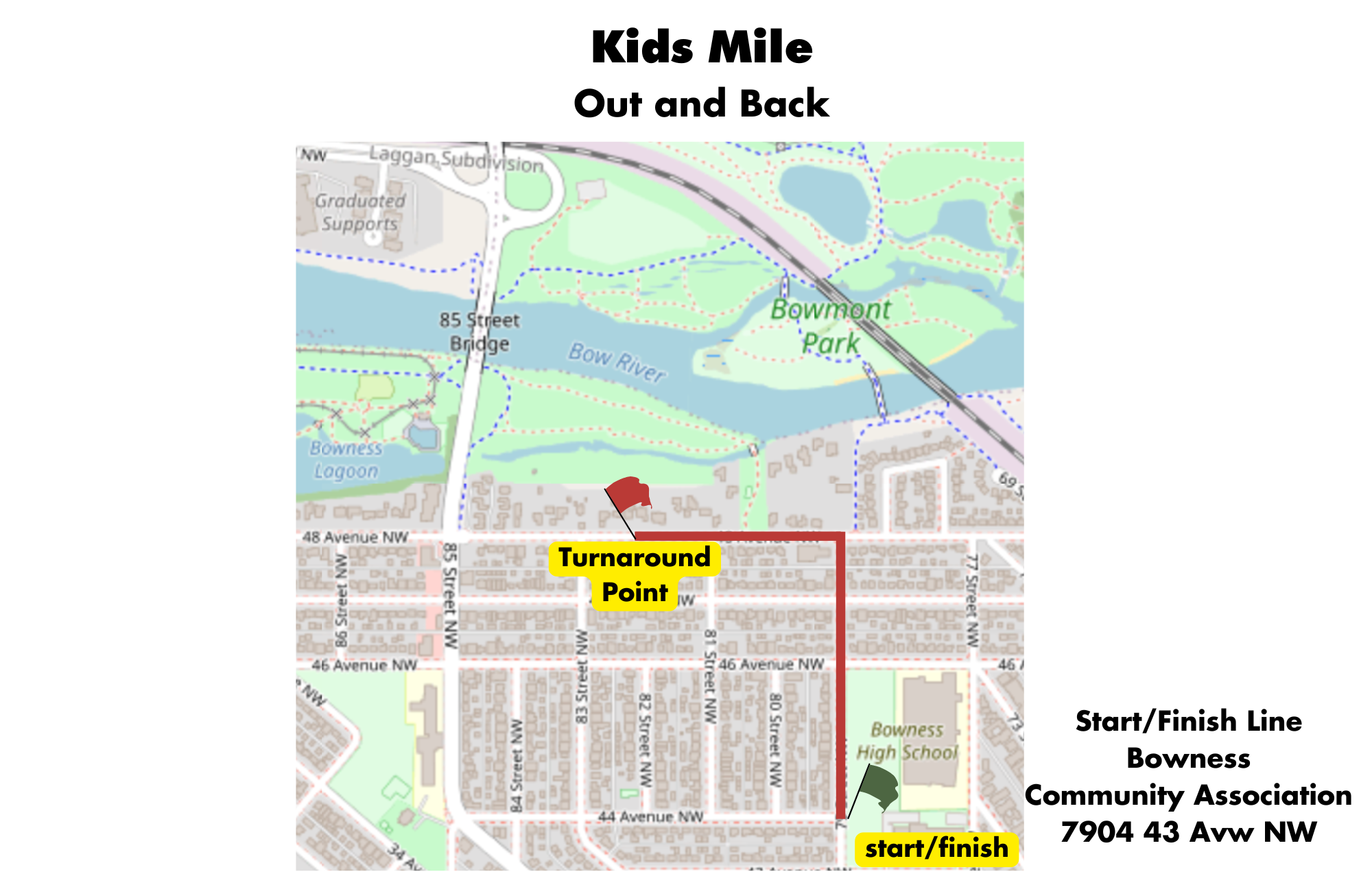 EVENT DAY Bib Pick Up will happen in the COMMUNITY ROOM at the Bowness Community Association (7904 43 Ave NW)