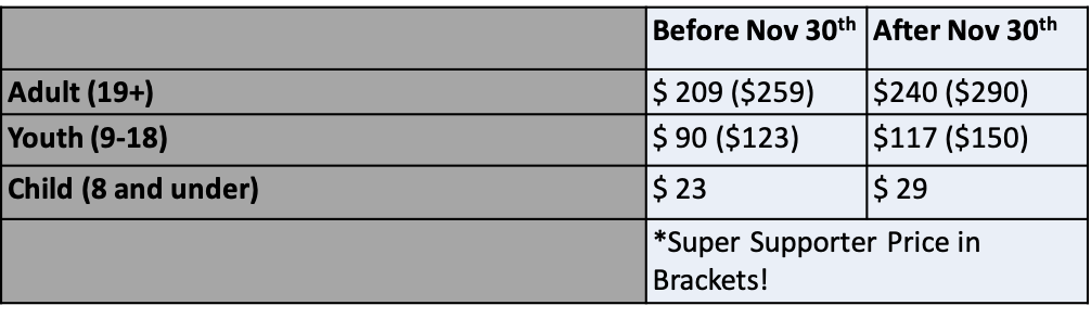 | ↳ SUPER Adult (19 & older) | $246.00 | |