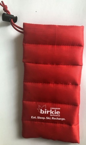 You have the option to sign up for your Virtual Birkie and include a special Birkie swag item: A thermal cover for your cell phone! See a photo